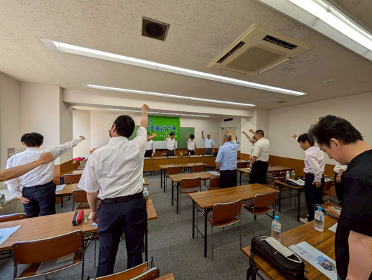 最後に、大会宣言を満場一致で採択し、「ガンバロー三唱」を全員で行い、新年度の活動をスタートさせました。